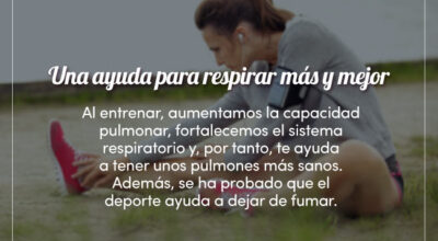 Al entrenar, aumentamos la capacidad pulmonar, fortalecemos el sistema respiratorio y, por tanto, te ayuda a tener unos pulmones más sanos. Además, se ha probado que el deporte ayuda a dejar de fumar.