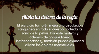 El ejercicio también mejora la circulación sanguínea en todo el cuerpo, incluida la zona dela pelvis. Por este motivo (y además de porque libera betaendorfinas), también puede ayudar a aliviar los dolores menstruales.