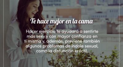 Hacer ejercicio te ayudará a sentirte más sexy y con mayor confianza en ti misma y, además,previene también algunos problemas de índole sexual, como la disfunción eréctil.