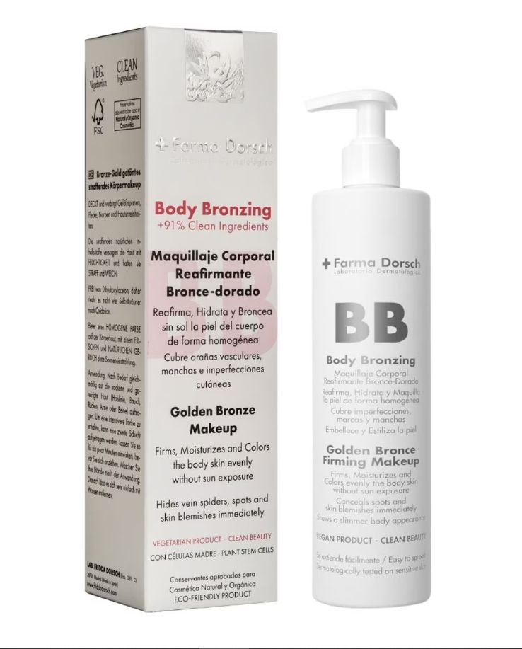 Al ser un producto de uso diario, el efecto de bronceado se mantiene uniforme, pudiendo intensificarlo o reducirlo en función de las veces que te lo apliques. BB Body Bronzing de Farma Dorsch te ayudará a reafirmar tu piel a la vez que darle el tono deseado. Ya no tendrás que pasar largas horas tumbada en la playa para conseguir un moreno express. Con este producto, puedes adelantar ese proceso y lucir un precioso tono dorado ya en tu primer día de vacaciones.
