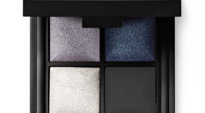 A continuación pasaremos a los ojos, en los que realizaremos un ahumado clásico con el tono azul oscuro muy bien difuminado, y marcaremos muy bien la línea de las pestañas utilizando la propia sombra negra. Con la sombra más clara, daremos un toque de luminosidad al tercio interno del ojo, y si quieres añadir luz al look más luz, puedes usar la misma sombra a modo de iluminador en el hueso de la ceja, el puente de la nariz y la parte alta del pómulo. Para finalizar con los ojos daremos dos buenas capas de una máscara que aporte volumen y curvatura a las pestañas.