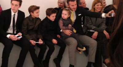 Los Beckham al completo durante el desfile de Victoria Beckham
