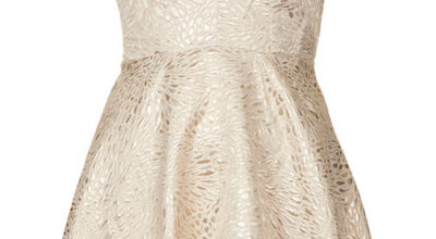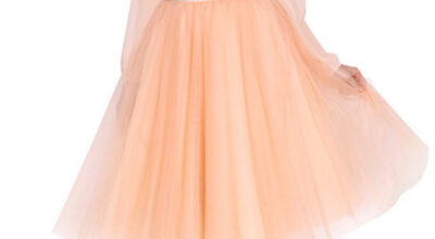 En color nude, plisada y con vuelo... con mucho vuelo. Y así, al bailar la falda se moverá contigo, disfrutando de cada vuelta que das.