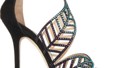 Adornados con cristales púrpuras y azules, las sandalias 'Kallai' de Jimmy Choo evocan las formas de la naturaleza.