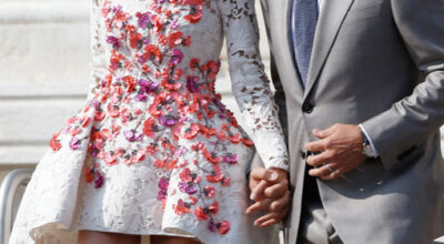 Durante los días que pasaron Amal Alamuddin y George Clooney en Venecia para celebrar su boda, Amal fue una de las mujeres más fotografiadas del año. Adoramos este vestido de Giambattista Valli Couture.