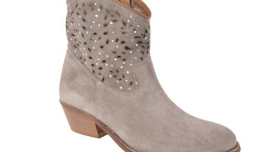 Botines de ante con troquelado en el tobillo y piedrecitas, de Alpe.