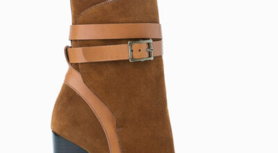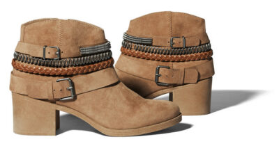 Botín de tela y piel con hebillas, de Springfield. Nos gusta la tira trenzada del tobillo.