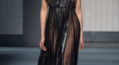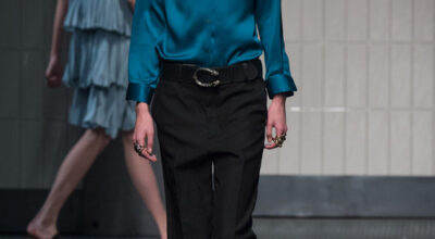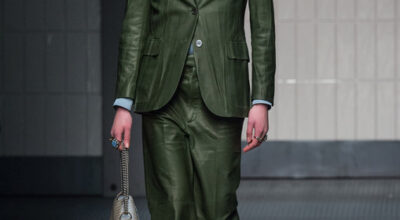 Debut de Alessandro Michele con sorprendentes zapatos de pelo, hombres con bolsos y ropa muy andrógina.