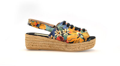 Sandalias de esparto con estampado de flores y cordones, de Gaimo.