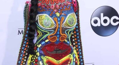 La peor vestida de los Billboard Music Awards 2015 fue Dencia con este extraño look. Mucho arte y también mucho mal gusto.