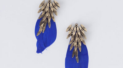 Pendientes con plumas azul Klein, de Suiteblanco (4.99 euros).