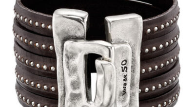 Pulsera de cuero con tachuelas y broche en plata, de Uno de 50.