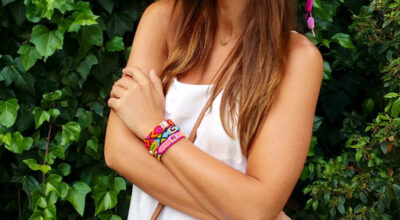 Paula lleva anillo de Swarosvski, pulseras de Petit París y gafas de sol de Woodys.