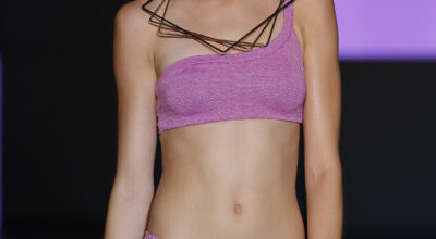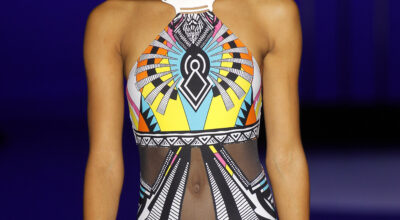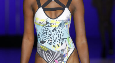 Dolores Cortés cerro la MBFWM15 con un desfile de moda baño con inspiración noventera. Trajes de baño, trikinis y bikinis con estampados coloridos y muy divertidos.