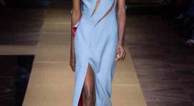 La colección de Versace se ha movido entre tonalidades pastel, como el rosa palo, el lila o el azul, y los cortes asimétricos. Donatella Versace ha creado unos vestidos con un aire muy de los noventa en los que las hombreras están muy marcadas. Diseños con mucha elegancia y sofisticación.