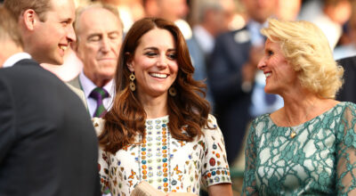 En Wimbledon, la duquesa combinó un vestido con estampado de mariposas con unos pendientes circulares de oro.