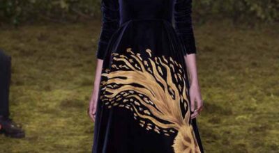 La puesta en escena no dejó indiferente. Las modelos, entre las que se encontraba Blanca Padilla, portaban los diseños en un ambiente de ensueño: un laberinto. Como si de un cuento de hadas se tratase, el desfile comenzaba con el lado oscuro y poco a poco fue tornándose hacia tonalidades blancas llenas de luz y, finalmente, a una variedad cromática mayor: rojo, verde, pasteles... Vestidos, en los que la feminidad es protagonista, acompañados de accesorios como antifaces, coronas de flores o plumas.