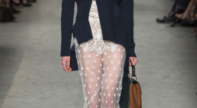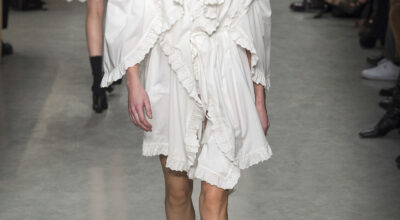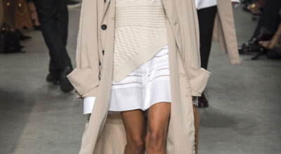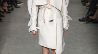 Christopher Bailey presenta una colección llena de contrastes, un mix entre sobriedad y excesos que va del minimalismo más puro hasta una opulencia impensable. Empezamos con prendas simples en una paleta neutra, camisas oversize con enormes puños, pantalones sastre y por supuestos sus clásicas gabardinas, hasta llegar a prendas con cut outs, escotes asimétricos o solapas deconstruidas.