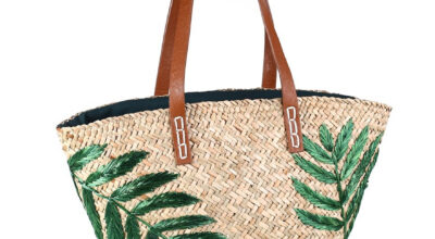 Capazo estampado con hojas verdes