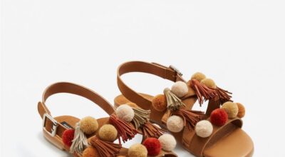 Sandalia de piel con pompones