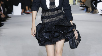 El blanco y el negro han sido los tonos predominantes en la mayoría de creaciones de la firma francesa. Si es cierto que las faldas, muy presentes en su propuesta, ponían el punto de color combinando diversos tonos y tejidos.