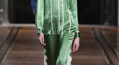 Para sus looks de noche, la firma apuesta por los colores más neutros como es costumbre con el negro por bandera muy lejos de los cortes y tonalidades del resto de looks que se presentaron. Colores más apagados y oscuros pero todos ellos con un denominador común: los estampados. En cuanto a tejidos predominan los vestidos vaporosos, delicados y muy suaves que en su mayoría todos están confeccionados en seda.