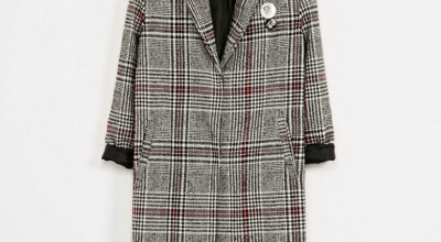 Abrigo de tartán con chapas, de Bershka (49,99 euros).