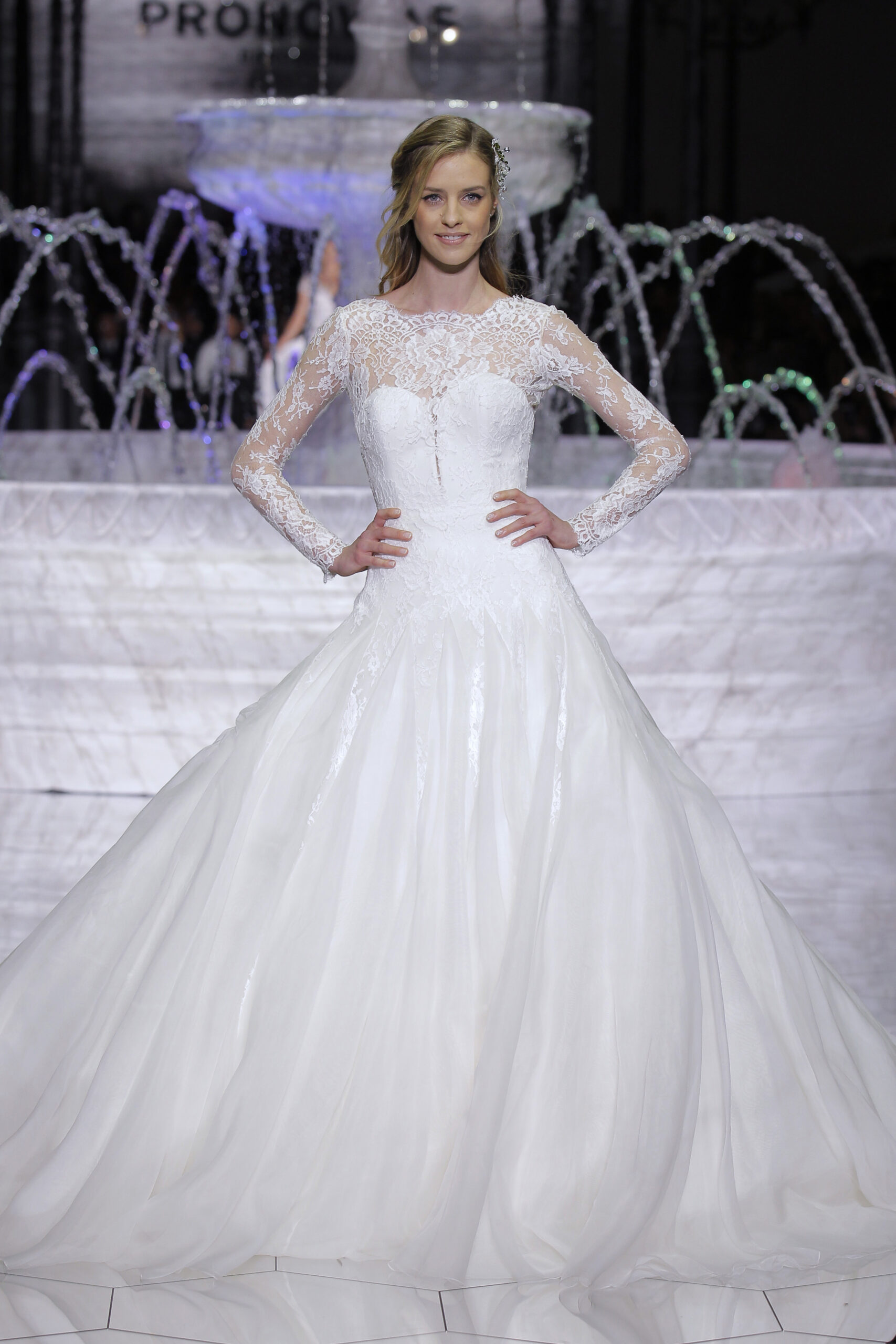 Por supuesto, una de las opciones que nunca puede faltar en Novias son las faldas y vestidos tipo princesas. Concretamente, la que vimos de Pronovias en tonos champagne con un polvo de estrellas que brillaba sobre el tul nos hizo realmente creer estar en un cuento. Ideal para las más clásicas pero que también quieren determinados detalles de tendencia.