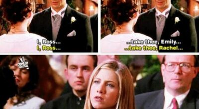 Más que una boda, lo que ocurrió en ese altar londinense fue un error fatal que dio lugar a la consolidación de una de las parejas más icónicas de la televisión. No hay mal que por bien no venga, ¿no? La confusión de Ross al nombrar a Rachel en vez de a Emily en el momento del «sí quiero«, provocó el asombro de los asistentes y la estupefacción de la propia Rachel, que se había presentado en esa boda presa de los celos (y en chandal). La historia de Ross y Rachel nunca fue perfecta. Se puede resumir en una larga lista de idas y venidas, enfados y reconciliaciones, que se acaban resolviendo de la mejor manera casi diez años después, haciendo las delicias de la legión de seguidores que confiaban en esta historia de amor.