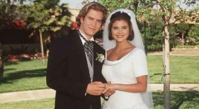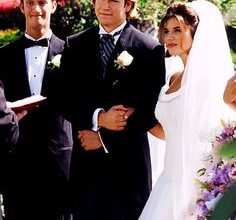 ¿Quién no estaba enamorada del macarra del tío Jesse? El tipo duro de Padres Forzosos, el motero que dormía en una habitación empapelada de conejitos rosas y se deshacía en atenciones con sus sobrinas, nos tuvo suspirando durante ocho temporadas. Se casó con Rebecca, la compañera de trabajo de Danny Tanner, a la que al principio cogimos mucho asco un poquito de manía (no me digas que no). Luego nos acabamos convenciendo que era la mejor opción para nuestro para nuestro adorado John Stamos y todas aceptamos a la tía Becky como una más de la familia Tanner. Aunque su vestido de novia era un horror estilístico de los 80, con mangas pomposas y cofia incluida, fueron felices, comieron perdices y tuvieron unos gemelos rubísimos, rubísimos.