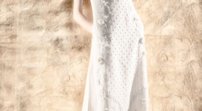 ¡Qué le voy a hacer si yo nací en el Mediterráneo! Al igual que Serrat, las raíces de este griego tienen que salir por algún lado. Sus diseños huyen del tono edulcorado de las novias románticas y se inspiran en el mar buscando el punto de sal. Bajos deshilachados, detalles frescos y texturas desenfadas son el leit motiv de Costarellos. ¿El resultado? Novias divertidas, despreocupadas y diferentes.