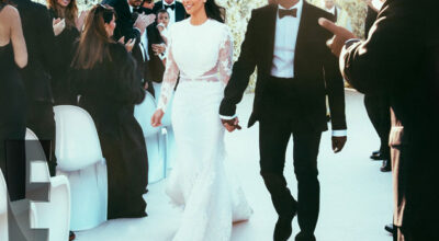 Ella, con un increíble diseño de encaje y transparencias firmado por el diseñador de Givenchy, Riccardo Tisci, destacó por su precioso velo. Un vestido que tras la ceremonia por un vestido corto de Balmain en color crema. Él, optó por un elegante esmoquín en color negro también firmado por Givenchy.