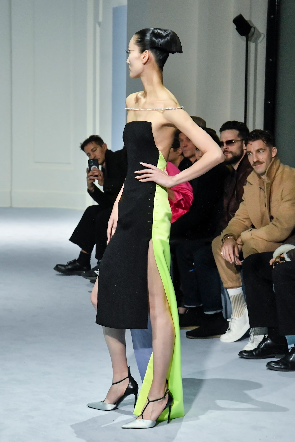 La actriz australiana sabe que allá donde vaya va a ser el objetivo de los fotógrafos, y por eso precisamente ha aprovechado para llevar este diseño a Cannes. Apareció en la alfombra roja con un vestido tricolor en honor a los colores de la bandera palestina y captó las miradas de todos los presentes. El vestido largo en rosa palo y negro, era un diseño de alta costura de Haider Ackerman para Jean Paul Gaultier, al que Blanchett añadió una cola verde. El vestido forma parte de la colección de primavera 2023, aunque se modificaron los colores del diseño original que eran negro, azul y verde lima.