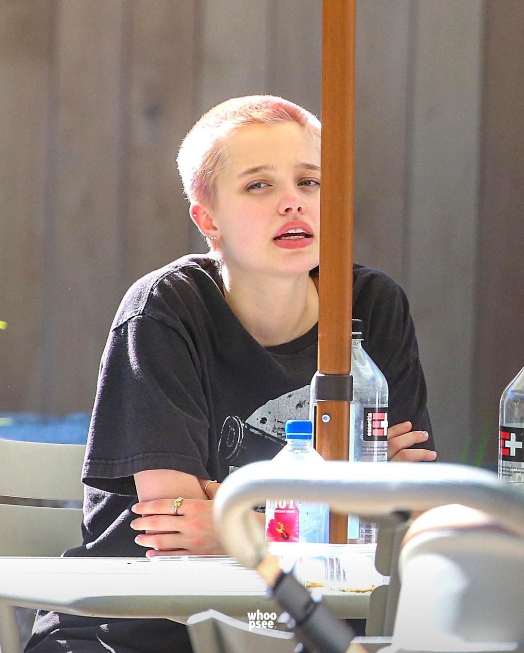 La adolescente fue fotografiada por Daily Mail luciendo su peculiar estilo de pelo rapado y con un color llamativo mientras disfrutaba de una reunión con una amistad en Studio City de Los Ángeles.