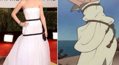 A los pocos minutos de aparecer desfilando por la alfombra roja del hotel Beverly Hilton de Los Ángeles, numerosos usuarios comenzaron a versionar a la actriz subiendo sus propios «diseños». Una sábana blanca y un poquito de cinta aislante fueron los mejores aliados de estos usuarios que no dudaron en hacer sus propios selfies y subirlos a la red para el divertimento de quien seguía la gala a través de Twitter. La gran princesa de Disney Ariel, animales varios y hasta una escoba fueron otros utensilios que inspiraron a la gente para versionar el Dior de la actriz.