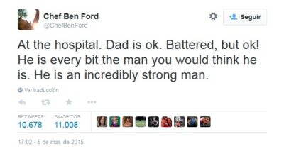 Tras conocer que el actor se encontraba fuera de peligro, su hijo Ben Ford quiso pronunciarse en su cuenta de Twitter con un mensaje en el que explicaba que el actor se encontraba bien, a pesar de los golpes. «Mi padre está bien. Golpeado, pero bien. Es todo lo hombre que pensáis que es. Es un hombre increíblemente fuerte», aseguró.