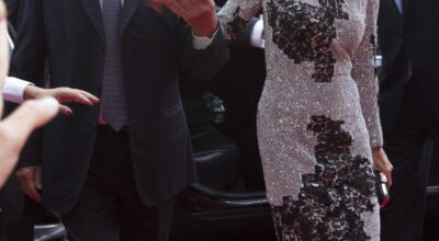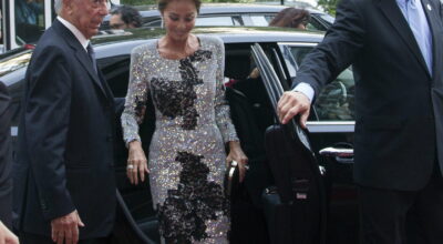 La musa de las portadas de corazón acudió de la mano del Nobel de literatura a la fiesta anual de Porcelanosa al otro lado del charco.