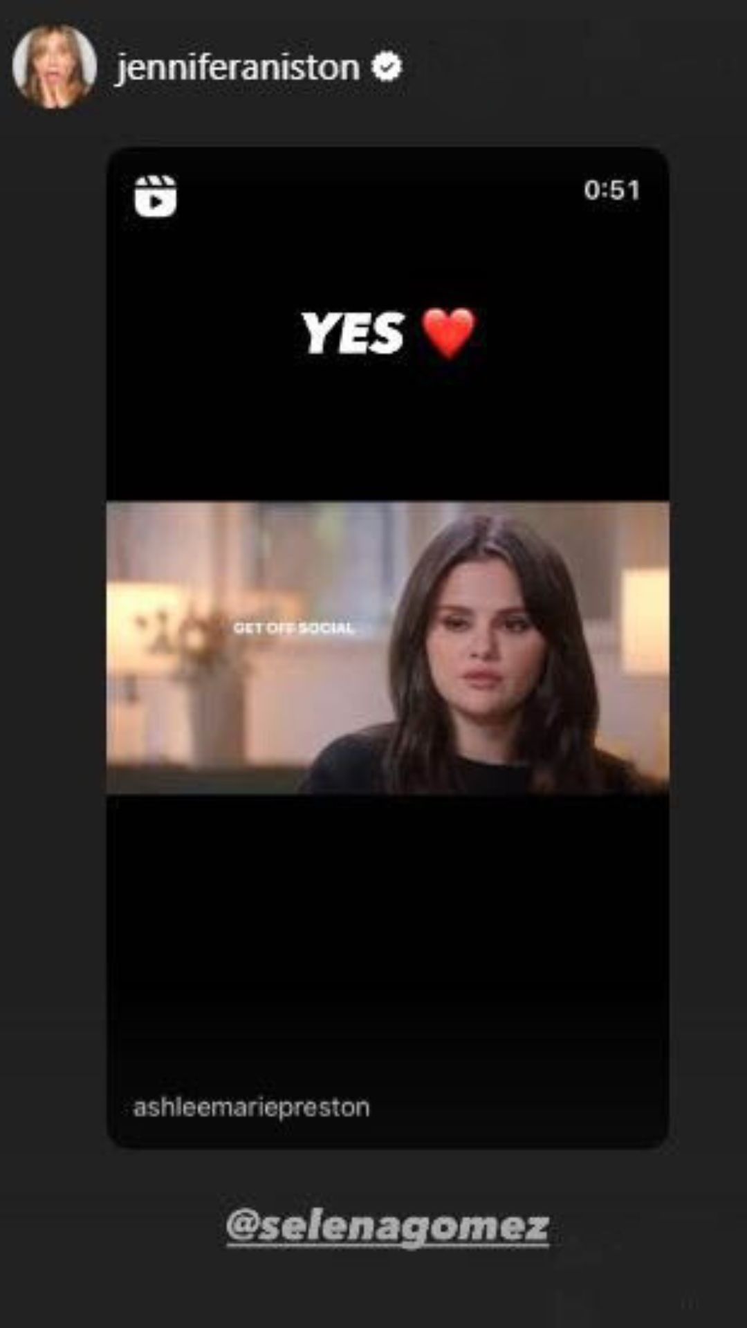 Jennifer Aniston hizo un guiño a su amiga al compartir en sus historias de Instagram un fragmento de una entrevista reciente que Selena Gomez concedió a la periodista estadounidense Ashlee Marie Preston. En esta conversación reveladora, Selena reflexionó sobre el impacto de las redes sociales en la mentalidad de las generaciones jóvenes, ofreciendo un consejo sincero para aquellos atrapados en el mundo digital.