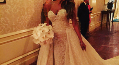 La actriz tuvo dos vestidos durante la ceremonia. Uno largo con el que disfrutó del enlace con muchos bordados y una gran cola y uno más corto, blanco y de fiesta, para los momentos finales de la ceremonia.