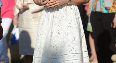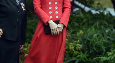 El éxito de su primer look a la llegada del aeropuerto de la ciudad de Wellington, causó furor y volvió a resaltar el trabajo de la casa de modas Catherine Walker & Co. Su abrigo rojo hasta la rodilla con doble botonadura y estilo años 60 que lució con un sombrero a juego de Gina Foster y un broche de diamantes y platino con forma de hoja de helencho- emblema de Nueva Zelanda- ha sido de los más aplaudidos y, seguramente, le hará pasar a la historia.