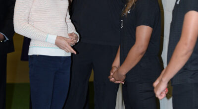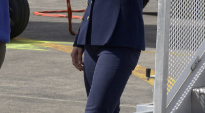 Pero a lo largo de estos siete días ha habido muchos más looks. El pasado fin de semana Kate acudía a un evento deportivo con un estilismo compuesto por vaqueros, suéter de algodón de rayas de Jonathan Saunders con deportivas de Mint Velvet. Un look que combinó a la perfección con una chaqueta marinera azul marino de Zara, que ya está agotada. Y es que la Duquesa de Cambridge ha lucido en dos ocasiones dicha americana. En otro de sus looks, la combinó con unos vaqueros skinny con camisa azul y unas cuñas del diseñador Stuart Weitzman, «made in Alicante», valoradas en 280€.