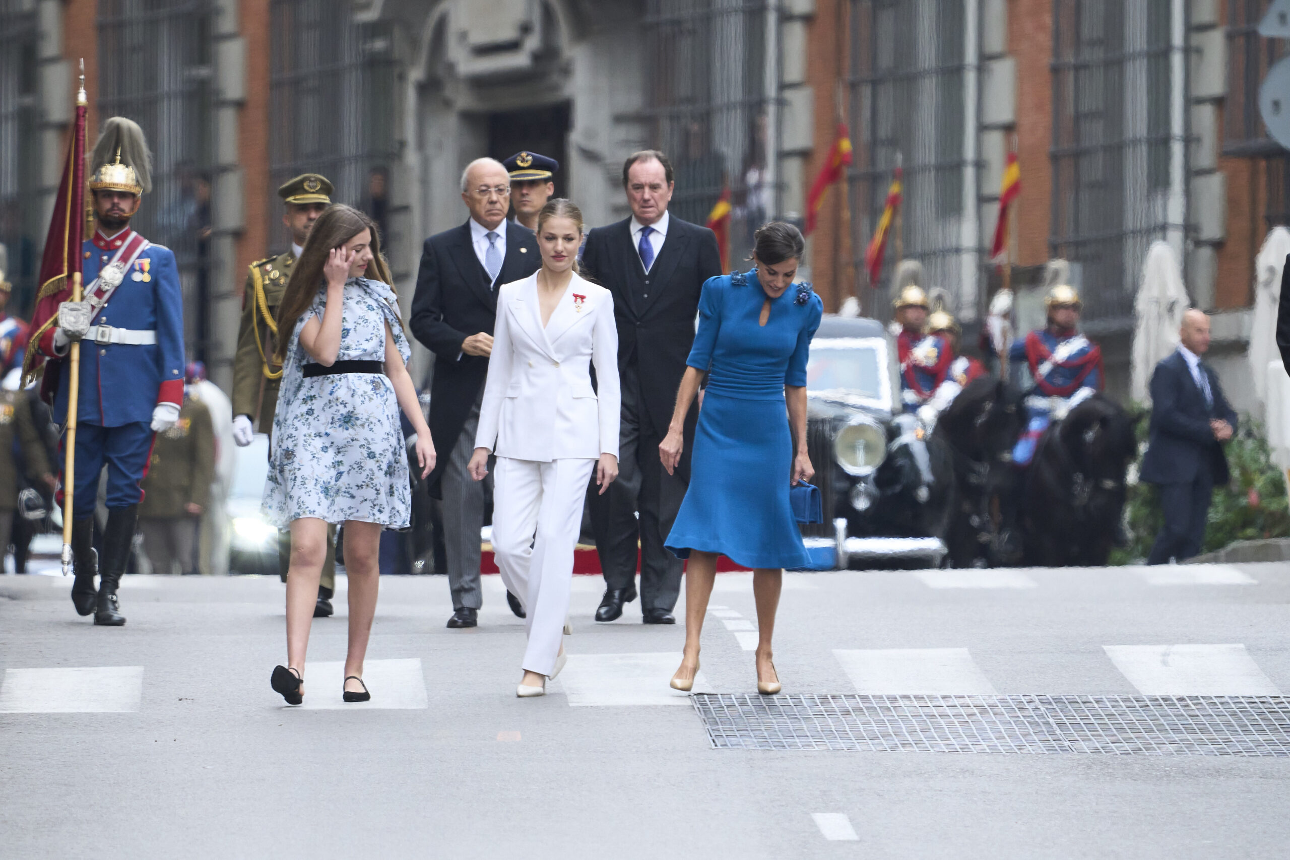 En cuanto a los looks elegidos para la ocasión, la Princesa Leonor optó por un traje pantalón en blanco, un guiño aparente a su madre, ya que Letizia eligió un traje pantalón para su pedida de mano. Además, el conjunto de Leonor fue confeccionado a medida por Sastrería Serna, la sastrería favorita del Rey para sus uniformes militares, un gesto que homenajeaba a su padre.