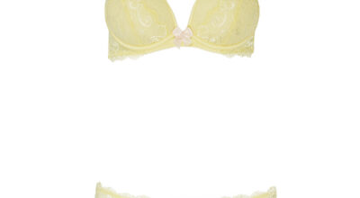 ¿Cansada de ver conjuntos de lencería para novias en blanco? Elige uno en tonos pastel. Este amarillo, de Debenhams (25 euros), nos encanta.