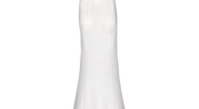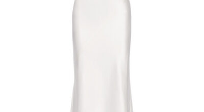 Vestido con espalda redondeada y sobre falda, de Asos (366,49 euros).