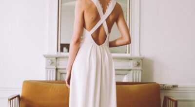 Vestido con espalda cruzada, modo peto, de Lora Folk.