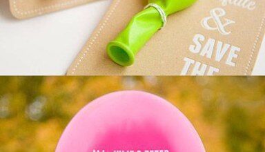 - Invitaciones de boda en forma de globo: ya las hemos mencionado antes y, como verás en las imágenes, sin duda es otra de las opciones más originales. Globos de color con un pequeño texto en el que se indican la fecha y hora del enlace. Se envían enganchados en un tarjetón donde se puede añadir un texto como "infla y reserva la fecha". Por supuesto, con el diseño, color y forma que más os guste. Si sois unos románticos podéis optar por globos en forma de corazón. ¡A todos les parecerá una idea muy divertida, sobre todo a los más peques de la casa!