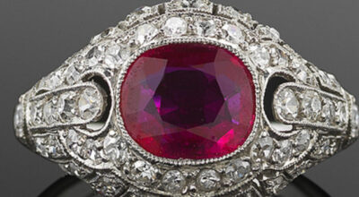 Anillo Art Déco con rubí y diamantes.