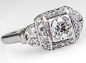 Anillo de compromiso vintage de 1930 en platino.