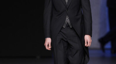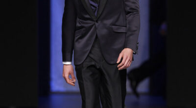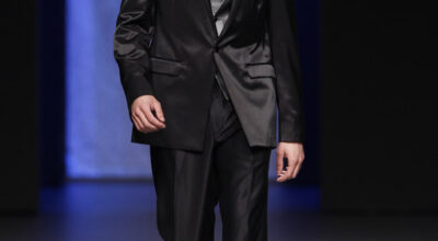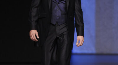 Miquel Suay presentó la colección masculina de la noche, compuesta por trajes de lo más elegantes, caracterizados fundamentalmente por su patronaje perfecto y delicado.