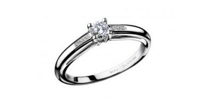 Una versión más sencilla del anterior. Anillo en oro blanco de 18 quilates con un discreto brillante.